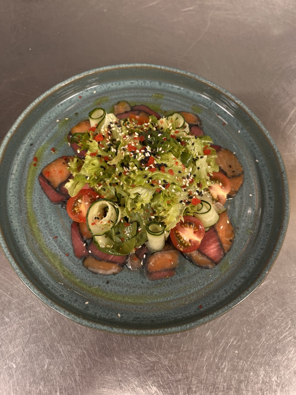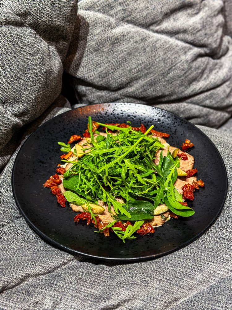 Брускета з соусом Вітело тонато та ростбіфом власного приготування
