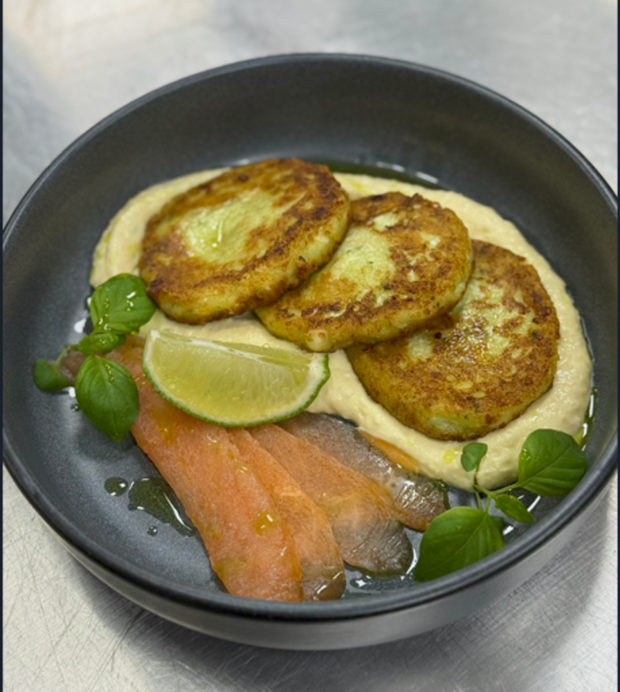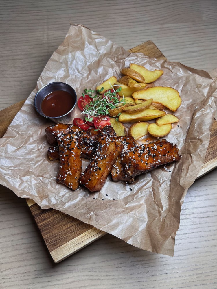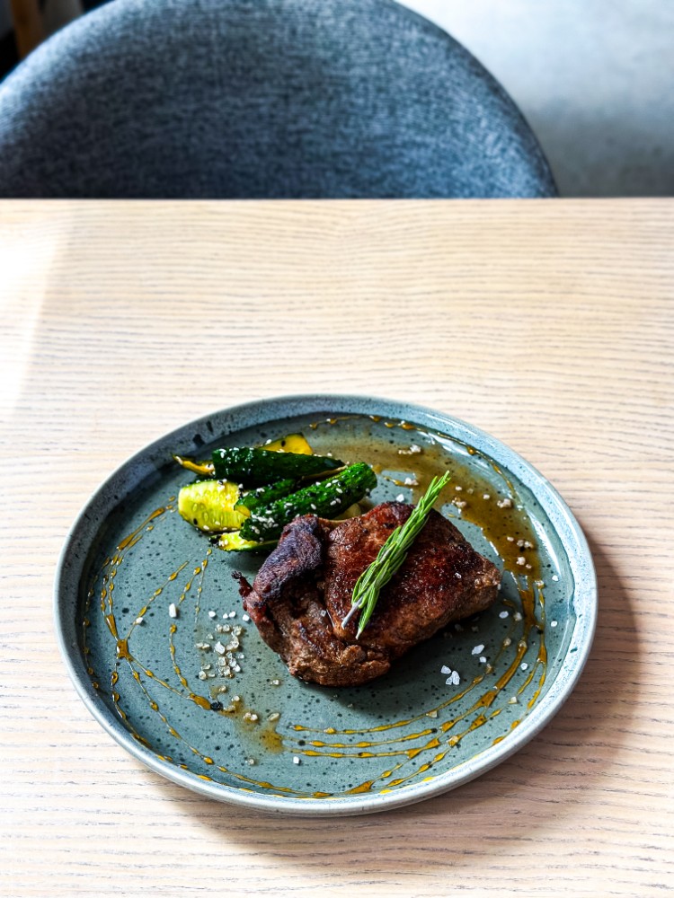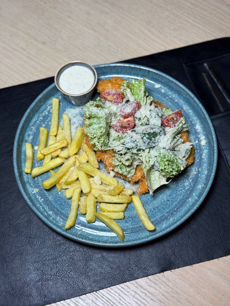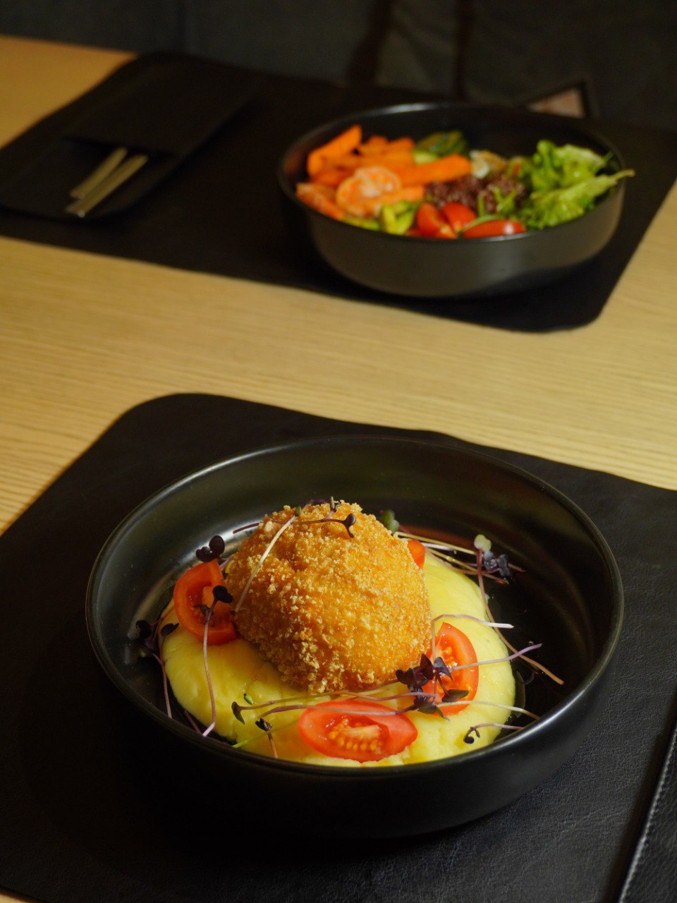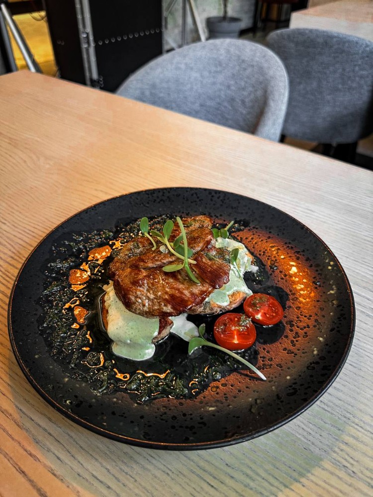 Стейк свинний на топченій картоплі з соусом тар-тар