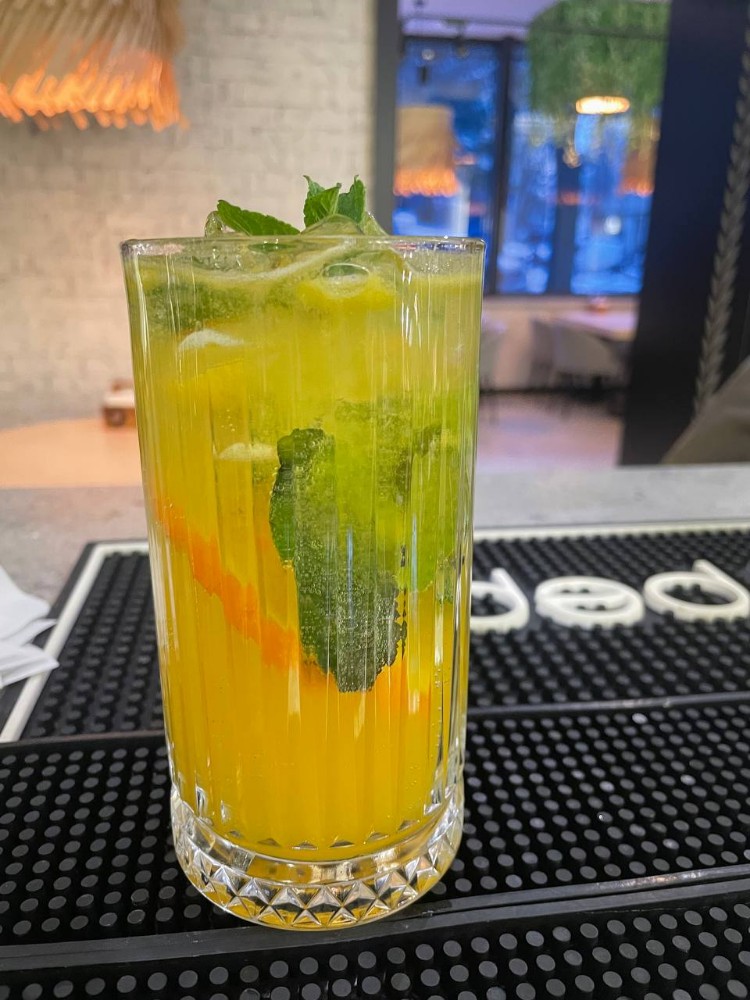 Стейк з лосося в зеленій паніровці з соусом велюте та смеш картоплею з маслом та вяленими томатами.